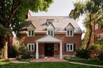 La scène est désolante mais pleine d’espoir. Accompagnée de son architecte, une jeune famille visite son bungalow dévasté par le feu. L’objectif est de le reconstruire… en mieux ! L’empreinte au sol de la résidence existante est conservée afin de minimiser l’impact environnemental du projet sur ce site pittoresque aux abords de la rivière des Mille-Îles. Inspiré des anciens chalets de bois du voisinage, le volume simple à deux pentes est ponctué d’une lucarne traversante logeant la chambre principale. Les aires de vie au rez-de-chaussée sont d’autant plus vastes qu’elles profitent d’un toit cathédrale. La maçonnerie de pierre grise avec sa grande toiture de tôle donne un aspect intemporel à l’ensemble qui contraste avec les couleurs changeantes du quartier luxuriant. Au reflet du cycle des saisons, le Phénix des Mille-Îles renaît de ses cendres !